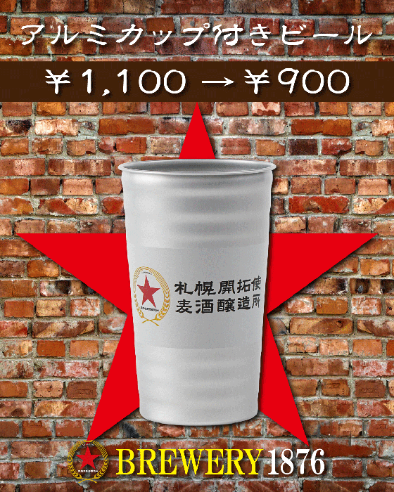 アルミカップ付きビール 1,100円 → 900円