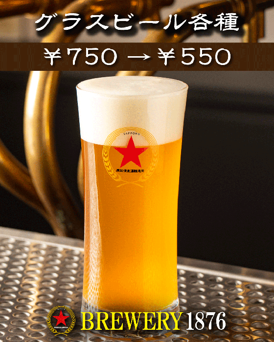 グラスビール 750円 → 550円